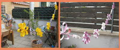 Then you have to fold in half and spillarlo each piece, and put them together in threes with the stapler. You can alternate petals of paper and cardboard giorale, or make flowers with the petals all the same.